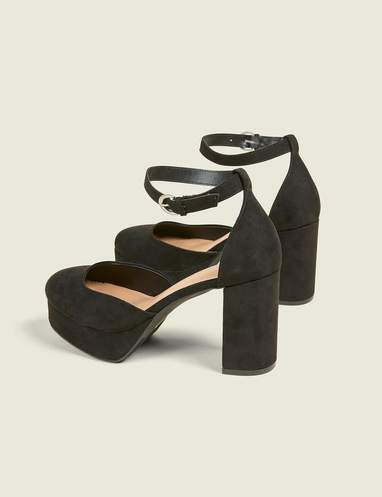 Make your next night out unforgettable with these Lane Bryant Dream Cloud closed-toe platform block heels. Crafted from soft black suede, they feature an elegant almond toe and a sturdy high block heel paired with a moderate platform for added height and comfort. The single ankle strap with a functional buckle closure ensures a secure, adjustable fit, while the wide fit design offers ease for plus-size wearers. Enhanced with a cushioned Dream Cloud insole, these heels combine style and comfort perfectly. Ideal for date nights, casual outings, or business casual events, they bring sophisticated charm to any look.