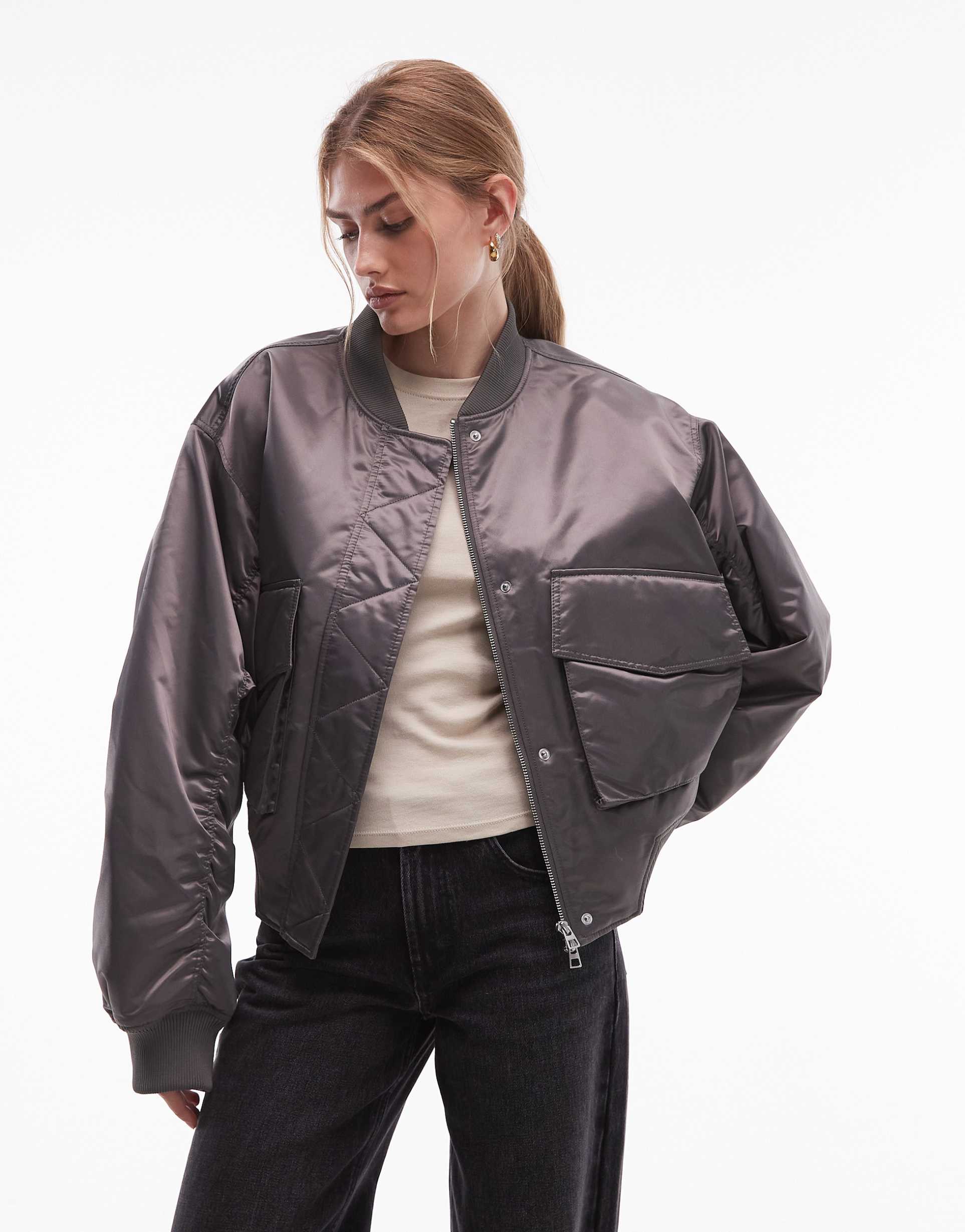 & OTHER STORIES BOMBER JACKET IN DARK GRAY