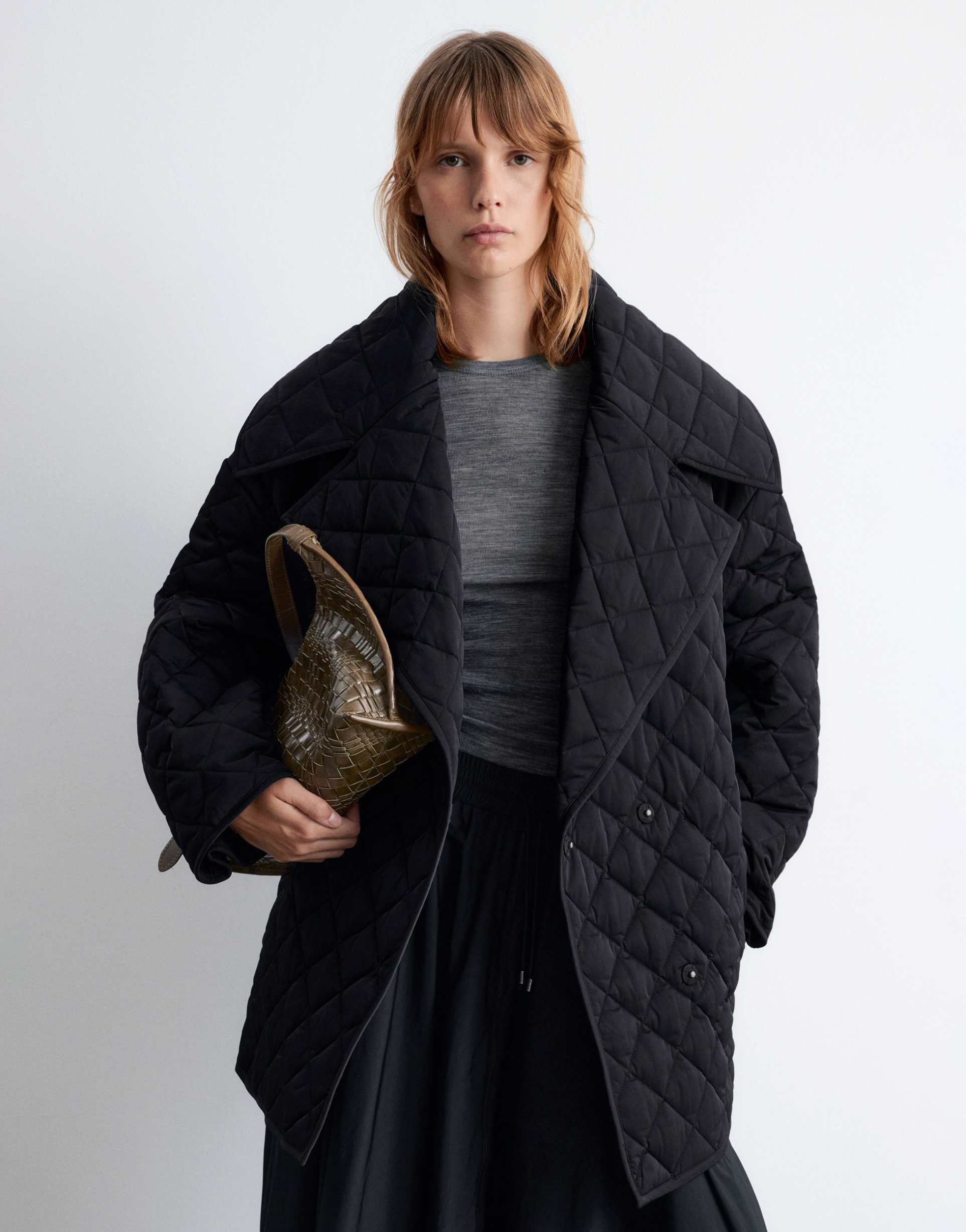 & OTHER STORIES QUILTED BELTED LONGLINE JACKET IN BLACK