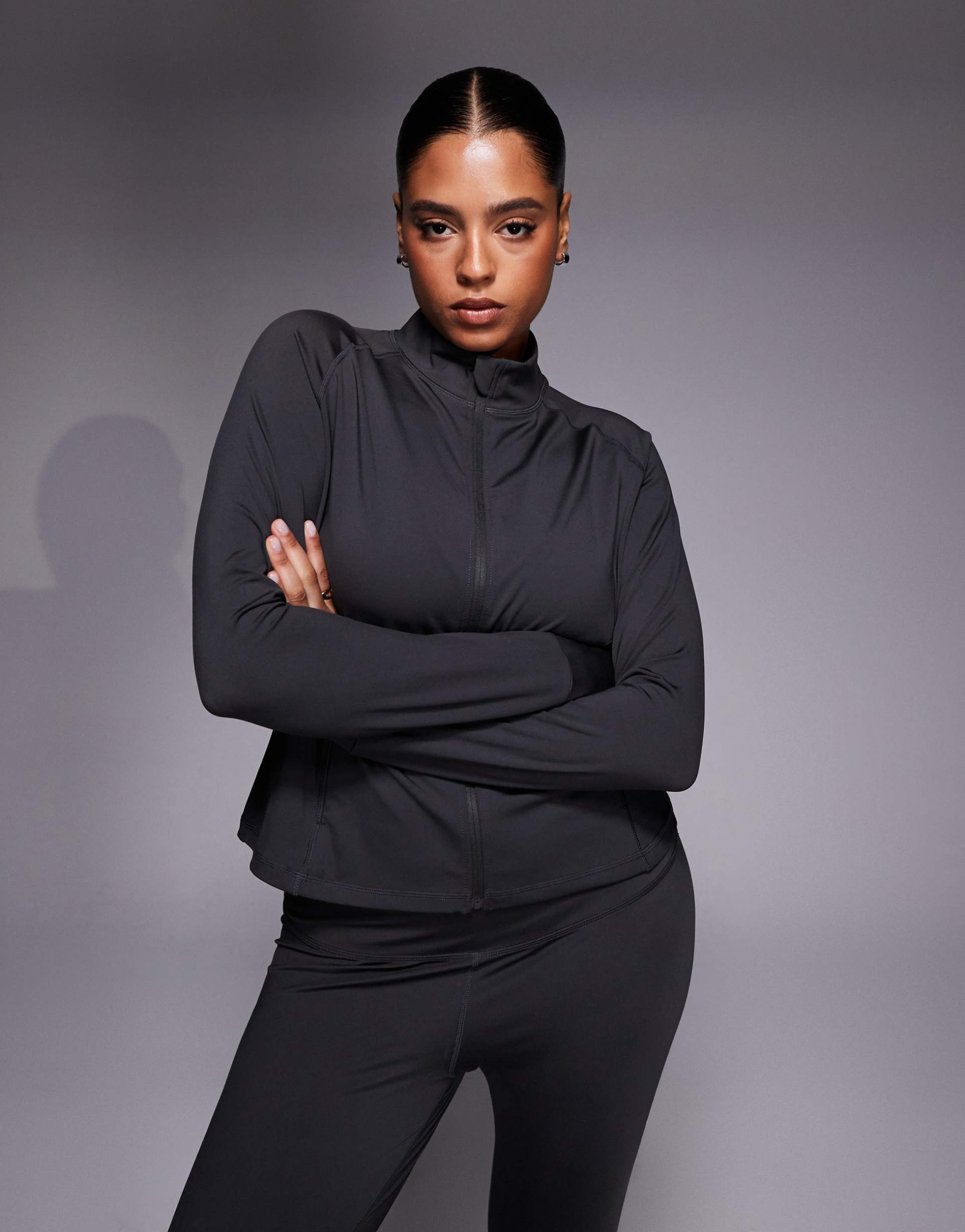 4505 CURVE ICON ACTIVE ZIP UP SCULPTING LONG SLEEVE JACKET WITH ZIP POCKETS IN SMOKE GRAY