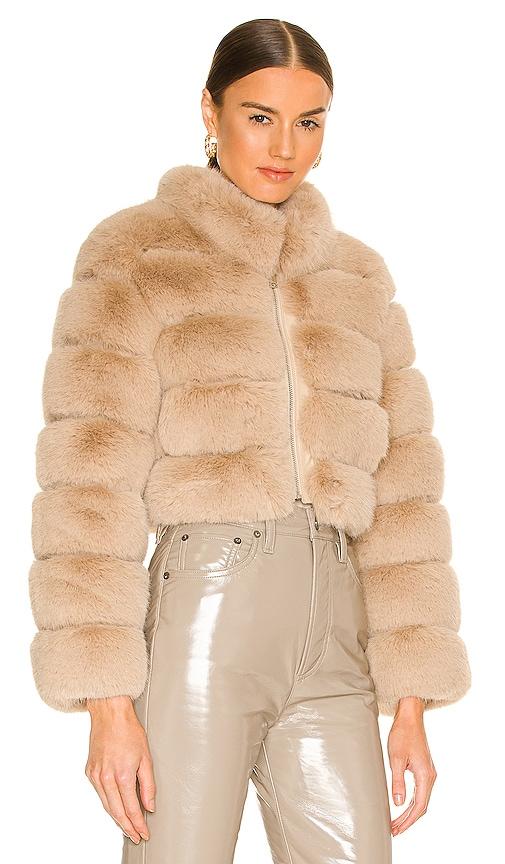 ADRIENNE LANDAU FAUX FOX FUR JACKET IN BEIGE.