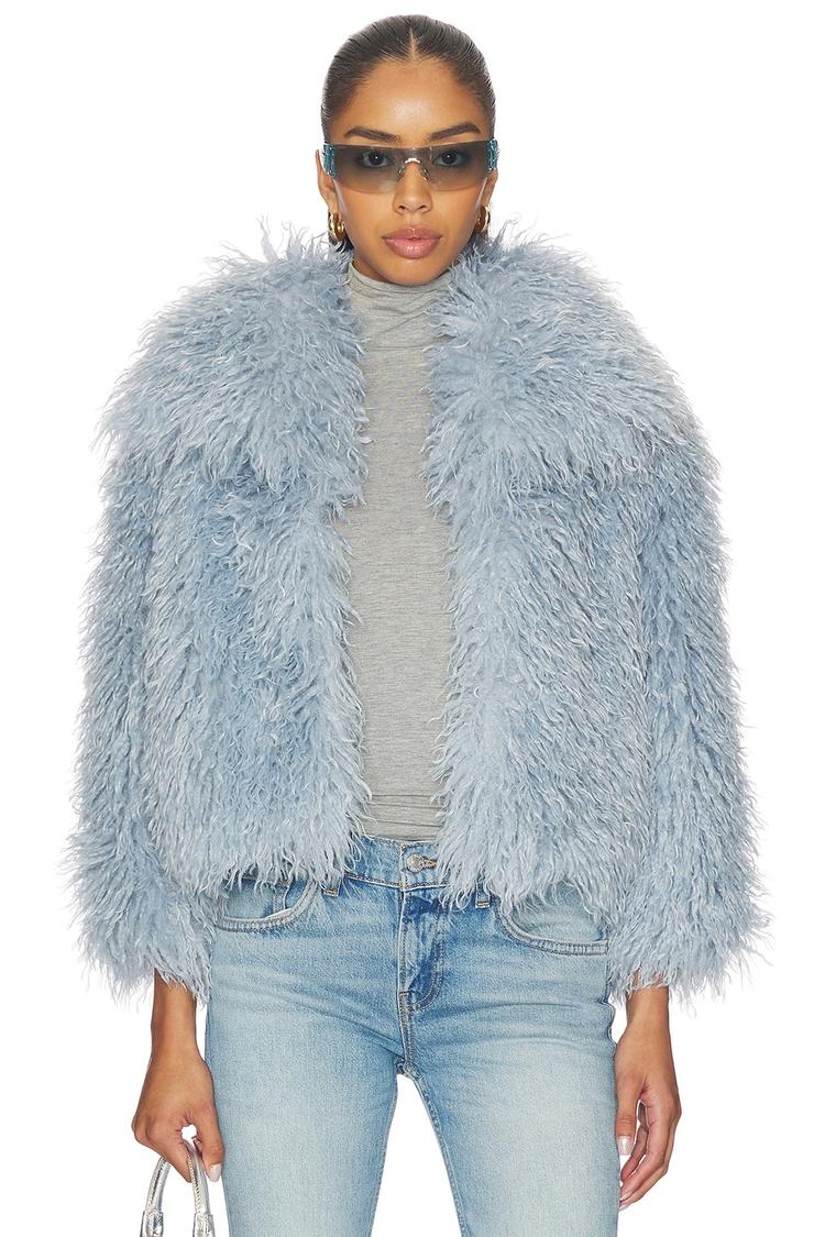light blue shaggy jacket