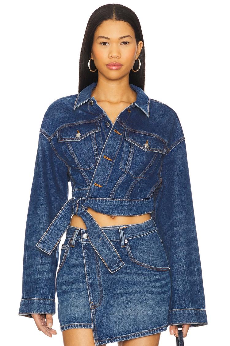 blue denim jacket with belt