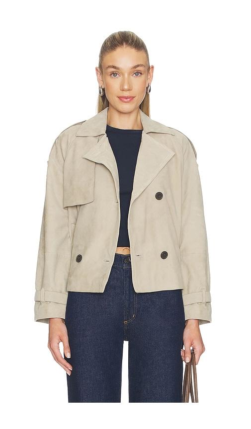 ALLSAINTS REED SUEDE JACKET IN TAUPE.