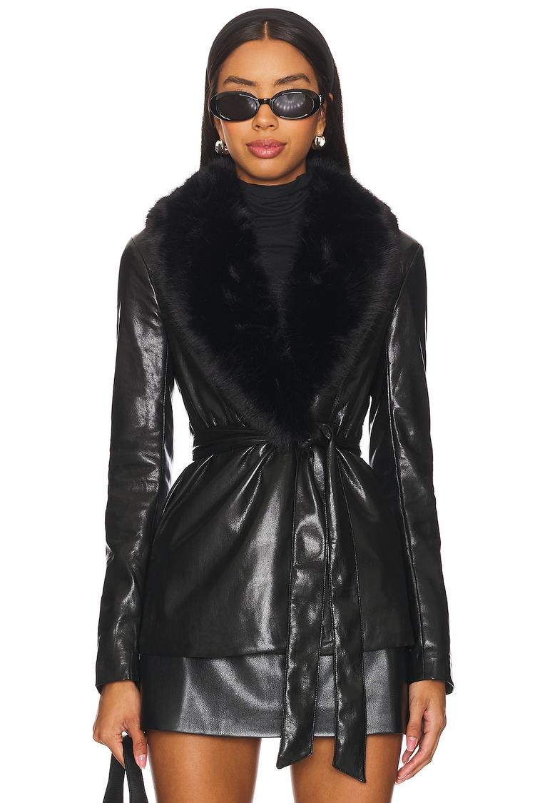 black faux leather jacket
