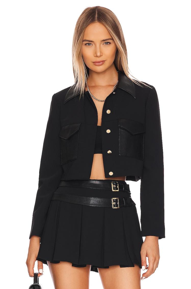 black fitted jacket with faux leather
