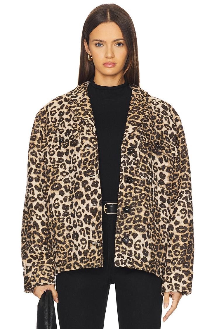 This Flynn Shacket features a relaxed fit with hip-length cut and long regular sleeves, crafted from a cotton, polyester, and viscose blend for comfortable wear. Its standout animal print in beige, black, and brown adds trendy street style appeal. The jacket is detailed with classic lapels, front button closure, buttoned flap pockets, and buttoned cuffs, enhancing both function and design. Perfect for casual outings, streetwear looks, or laid-back workwear during autumn, winter, and spring seasons, this matte-finish shacket provides versatile layering with a chic edge.