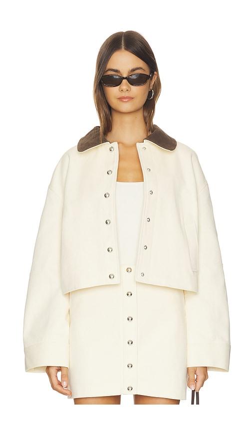 APPARIS ELLA CANVAS CROPPED JACKET IN IVORY.