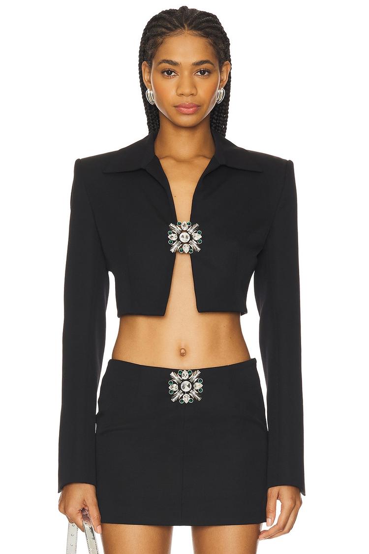 black jacket with rhinestone closure