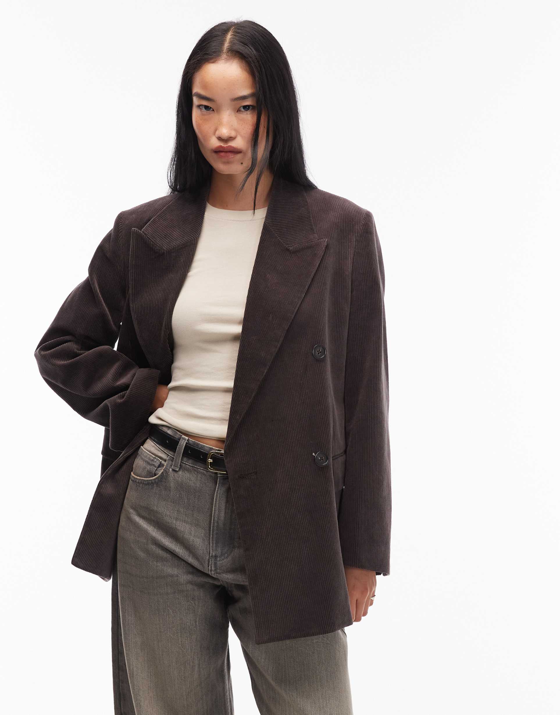 ARKET CORD DOUBLE BREASTED BLAZER COAT IN BROWN