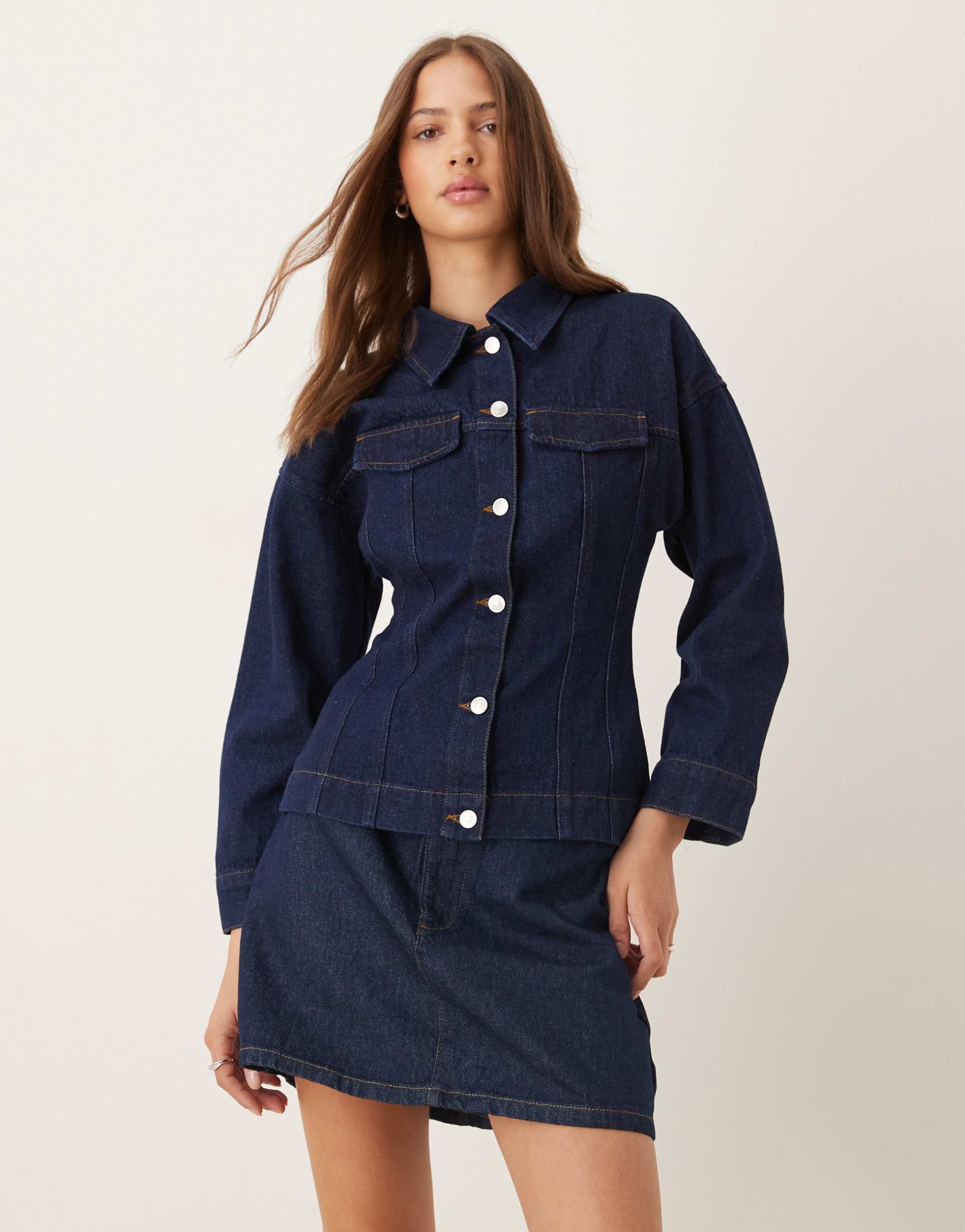 ASOS DESIGN DENIM JACKET WITH CINCHED WAIST IN INDIGO