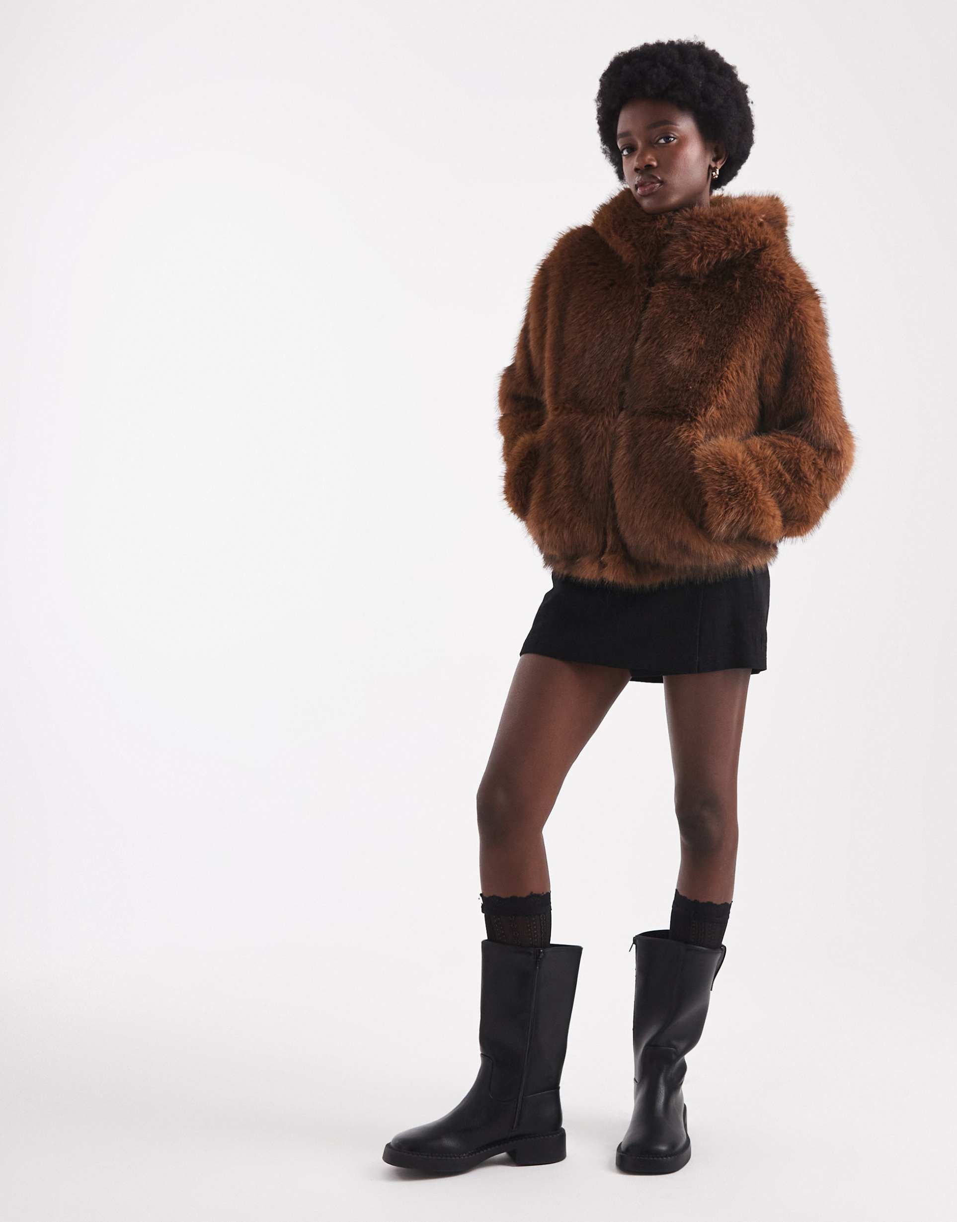 ASOS DESIGN HOODED FAUX FUR BOMBER COAT IN GINGER TIP
