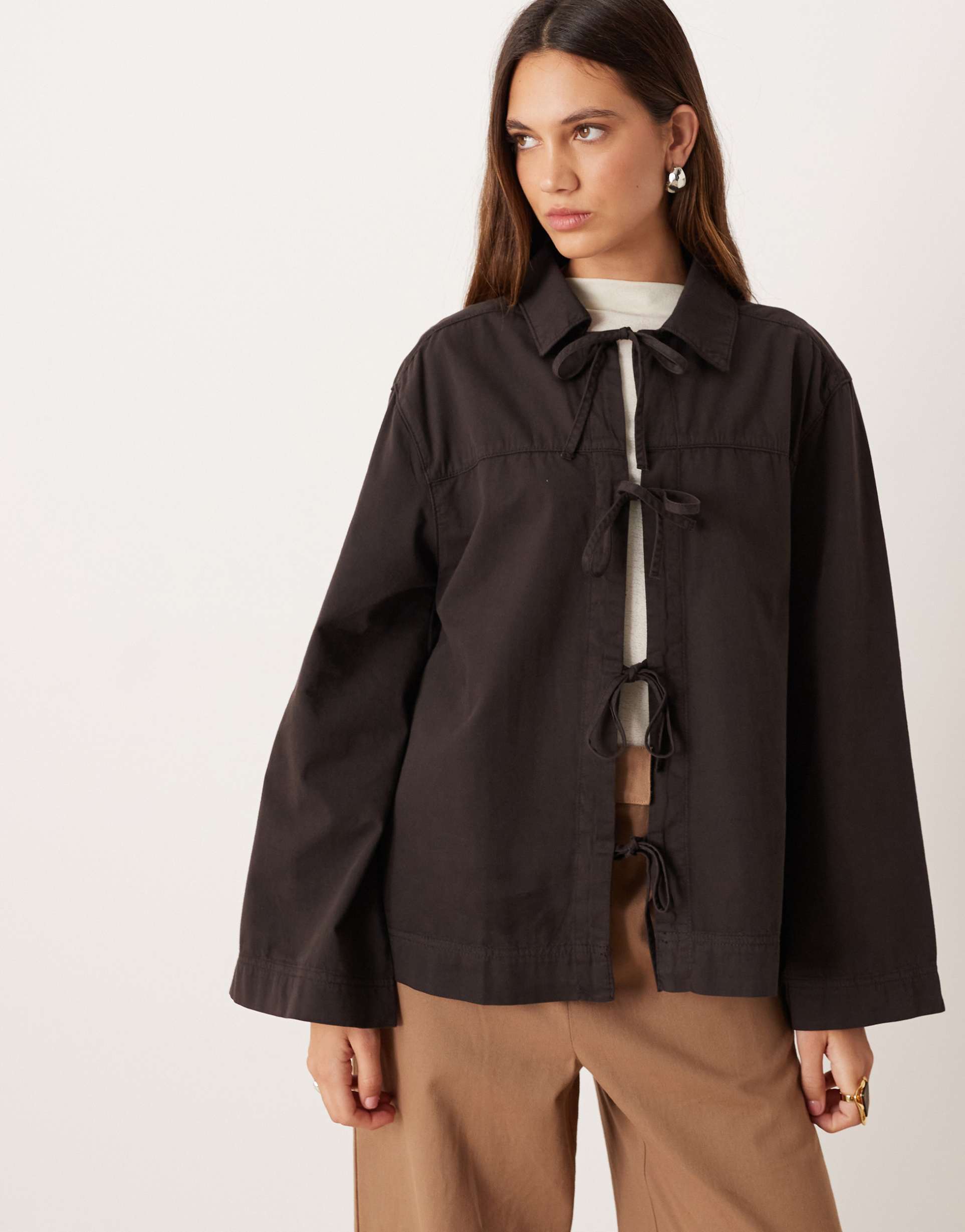 ASOS DESIGN OVERSIZED A-LINE JACKET WITH TIE FRONT