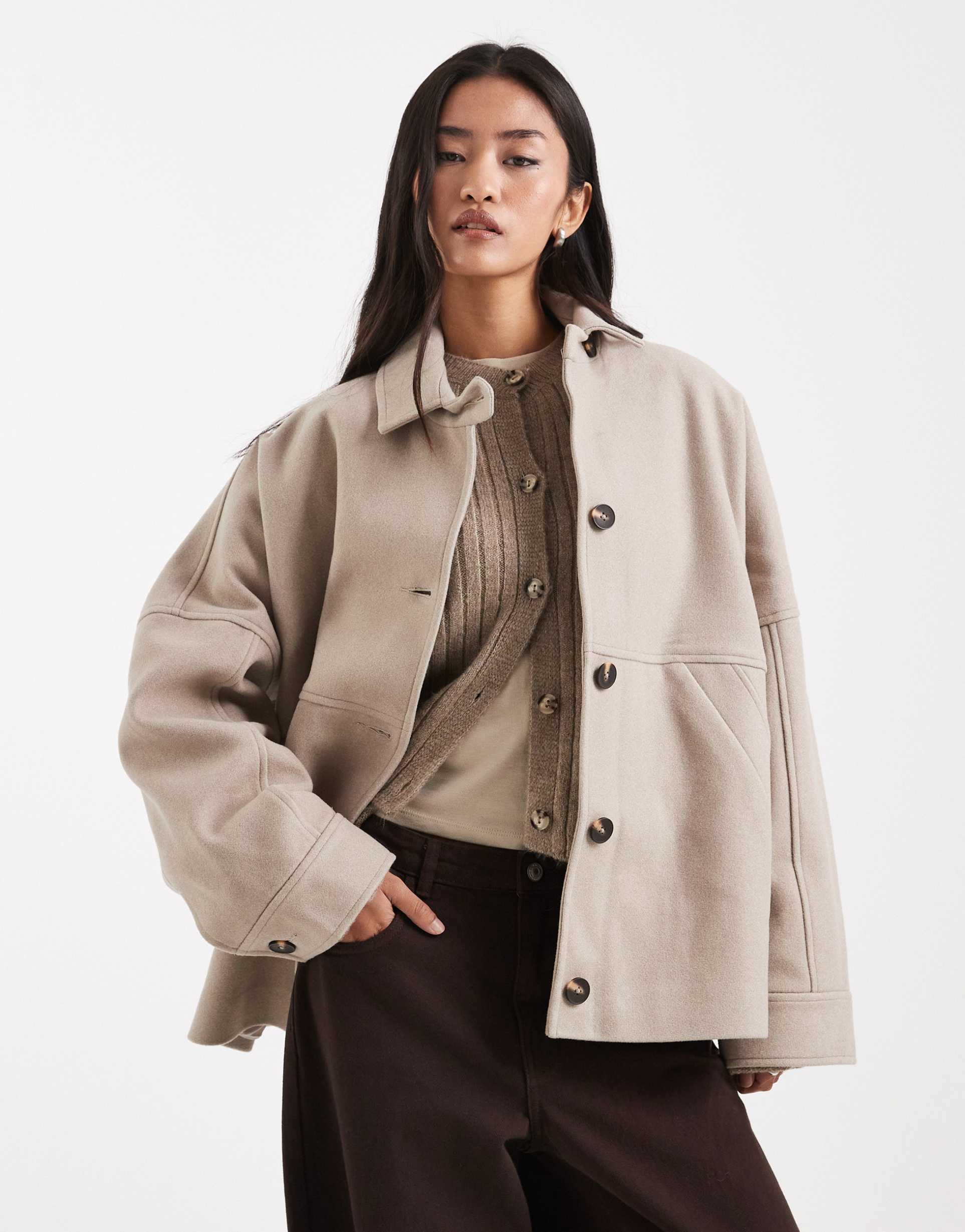 ASOS DESIGN SLOUCHY FORMAL HARRINGTON JACKET IN OATMEAL