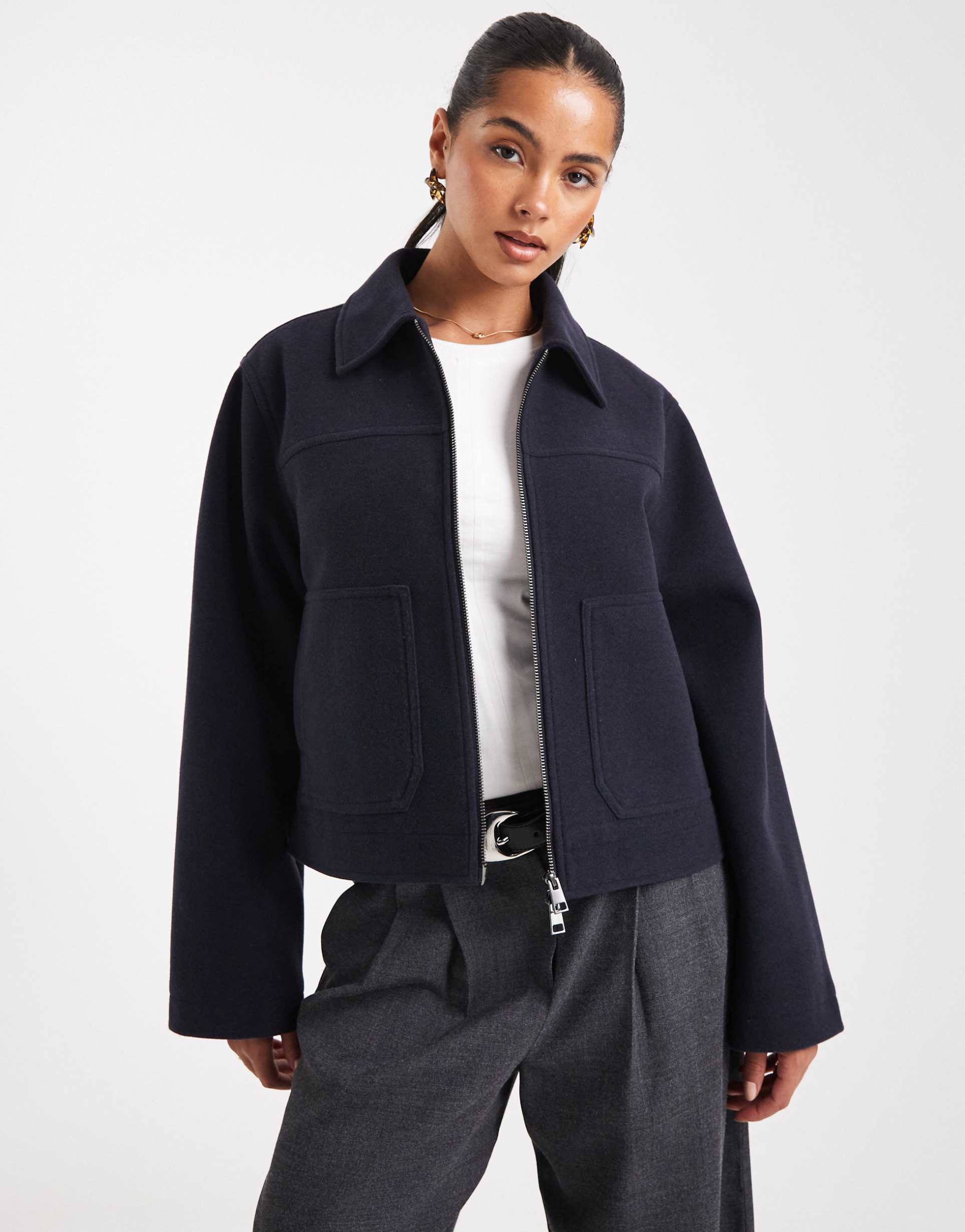 ASOS DESIGN TOP COLLAR ZIP UP JACKET IN NAVY