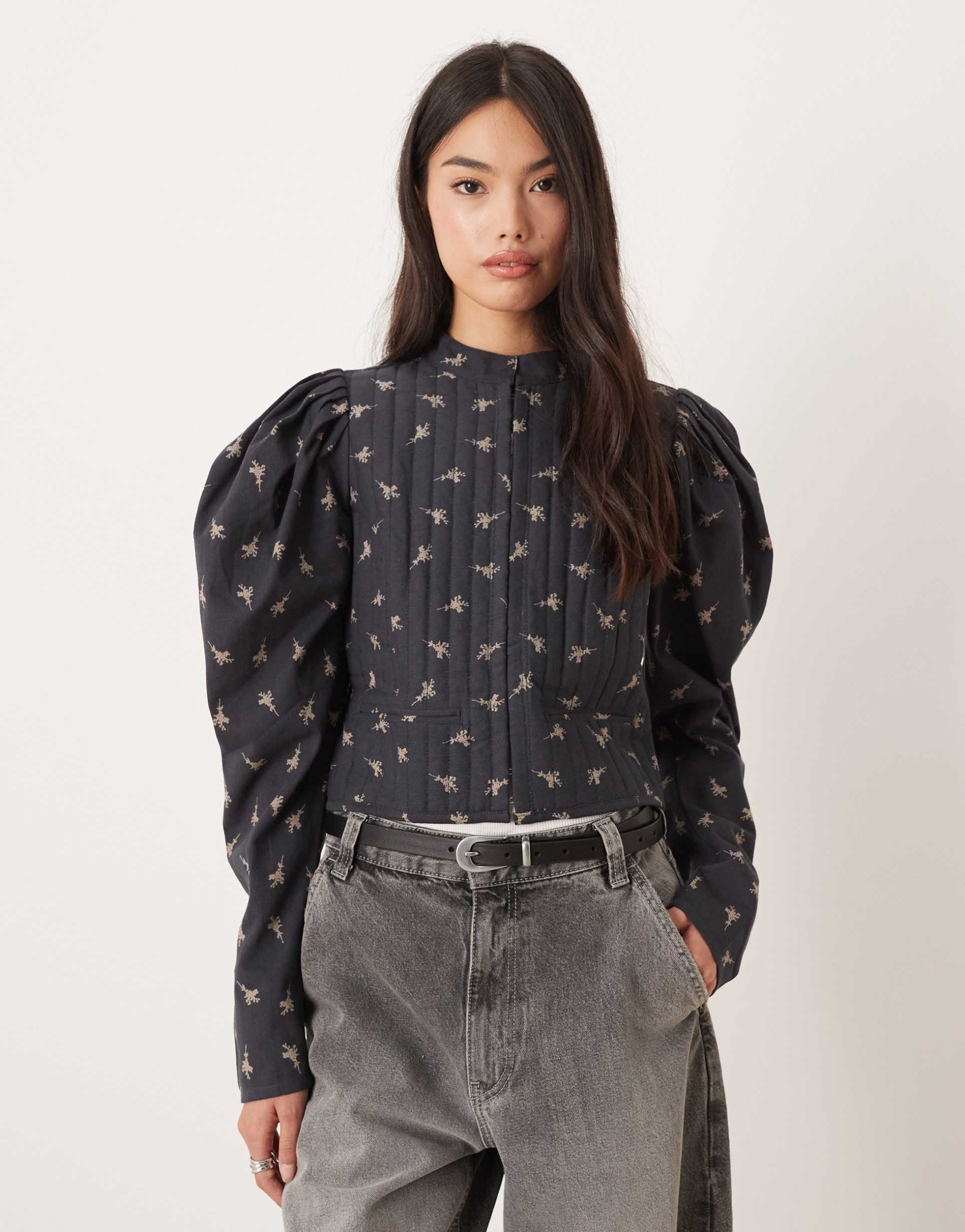ASOS DESIGN VOLUME SLEEVE QUILTED BED JACKET IN NAVY FLORAL PRINT