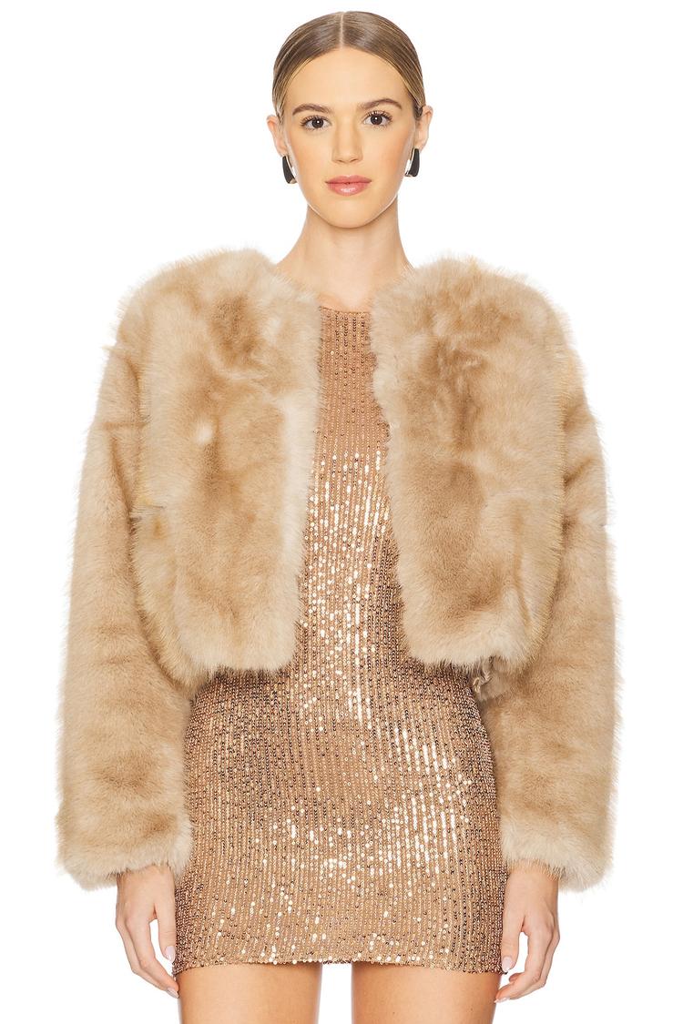 This chic blouson-style jacket features a heavyweight beige faux fur fabric that offers a soft, plush texture and a loose fit for comfortable layering. The jacket is waist length with long regular sleeves and a simple round neckline, creating an easy-to-wear silhouette. It closes with a hidden front hook and eye closure and includes discreet side seam pockets for functionality. Ideal for autumn and winter, this jacket pairs perfectly with evening wear for night outs, date nights, or casual occasions, adding warmth and a trendy edge to your look.