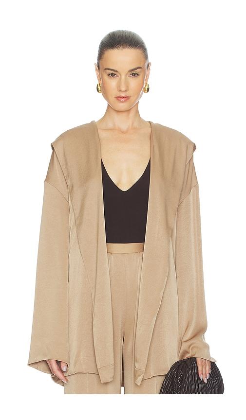 ATLEIN HOODED WRAP JACKET IN BEIGE.