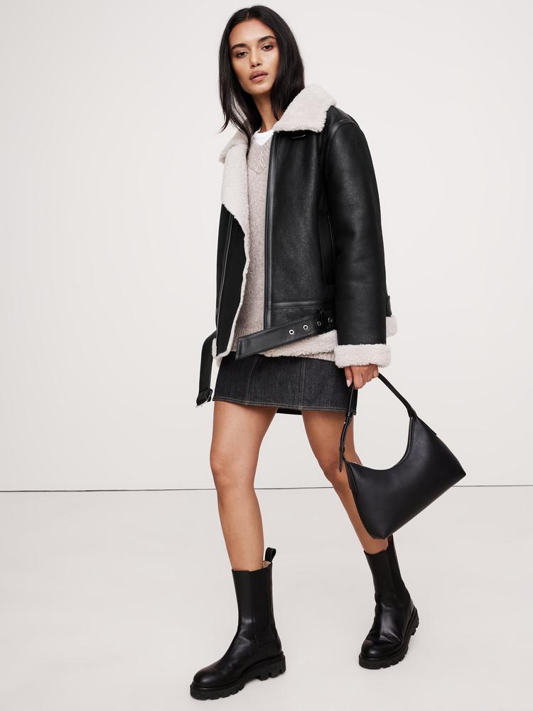 Embrace timeless style with our Shearling Aviator Jacket. This essential piece features a soft leather exterior that matures beautifully over time, complemented by a luxuriously warm shearling lining. Designed for a relaxed fit, it offers ultimate comfort while layering effortlessly. A distinguished point collar and belted throat latch lend a rugged charm, while the zip-front closure adds practicality. Perfect for casual outings or travel adventures, this jacket is not just an outerwear piece but a statement of vintage sophistication. Elevate your autumn and winter wardrobe with this luxurious staple.