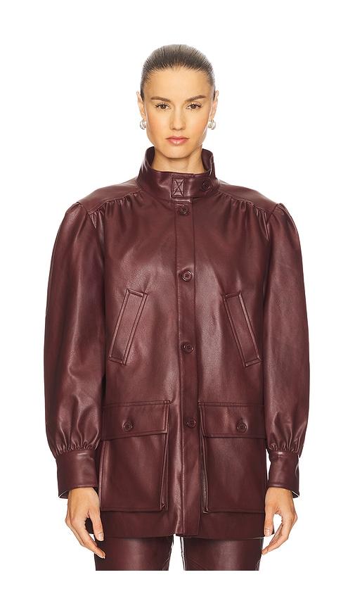 BARDOT CLEMENTS FAUX LEATHER JACKET IN BURGUNDY.