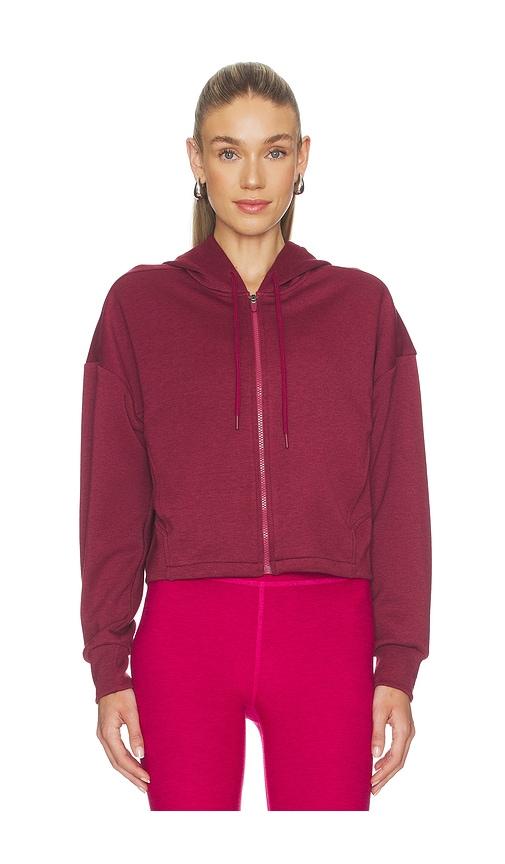 BEYOND YOGA SCUBA CROPPED JACKET IN BURGUNDY.