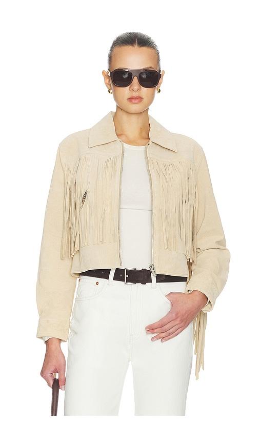 BLANKNYC FRINGE JACKET IN TAN.