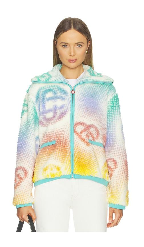 CASABLANCA MONOGRAM FLEECE JACKET IN TEAL,BLUSH.