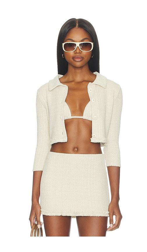 DEVON WINDSOR BRIELLE JACKET IN CREAM, METALLIC GOLD.