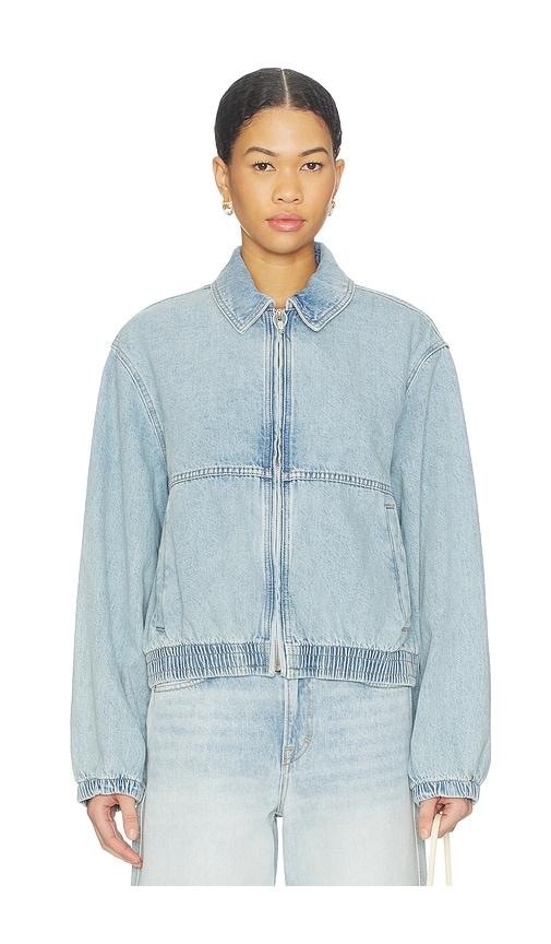 FREE PEOPLE X WE THE FREE BIRDIE DENIM JACKET IN BABY BLUE.