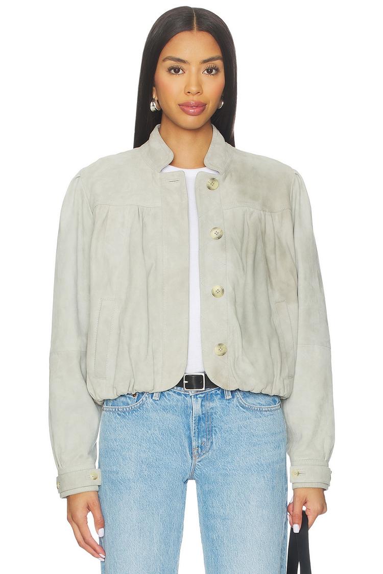 X WE THE FREE NIMBUS SUEDE JACKET IN GREY