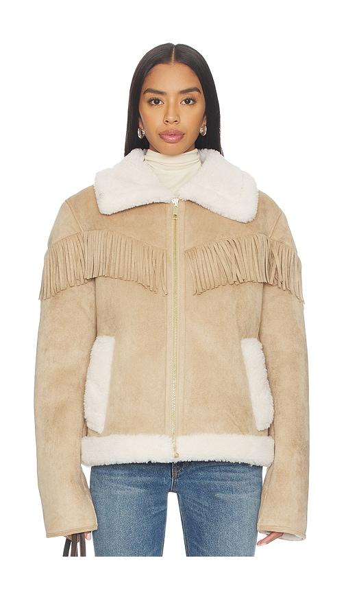 GENERATION LOVE INEZ FAUX SHEARLING JACKET IN TAUPE.