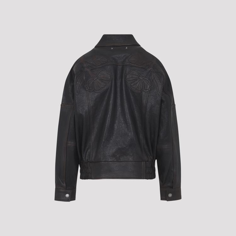 GOLDEN GOOSE FLOWER EMBROIDERY JACKET BLACK OVINE LEATHER - WOMEN