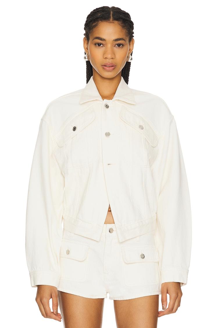 This Amelia Oversized Cinched Waist Jacket by Grlfrnd is crafted from 100% cotton in a crisp off-white hue. The blouson silhouette features a relaxed oversized fit with a cinched waist at the back for subtle shaping. It has a classic turn-down collar, long regular sleeves with buttoned cuffs, and a button-front closure. Practical breast flap pockets and side slant pockets add functional charm, while the waist-length cut makes it versatile for layering. Ideal for casual outings, street style looks, and travel during spring, summer, and autumn seasons.