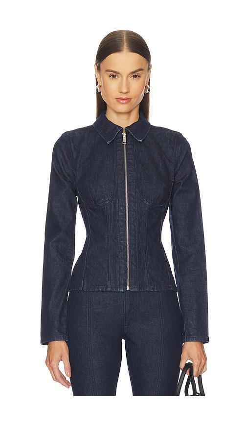 GRLFRND DANIELLE BUSTIER JACKET IN BLUE.