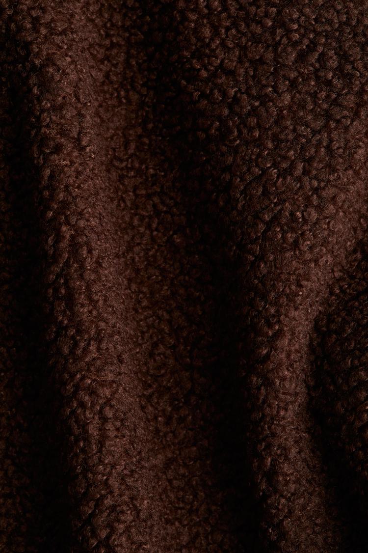 This relaxed-fit blouson jacket features a cozy stand collar and a practical half-zip closure, crafted from plush dark brown fleece fabric with a rich teddy texture. Its waist-length silhouette and long regular sleeves offer casual comfort perfect for autumn and winter layering. Ideal for casual outings, loungewear, or travel, this jacket combines sporty chic style with functional warmth, making it a versatile and easy-to-wear piece for everyday cool-weather dressing.