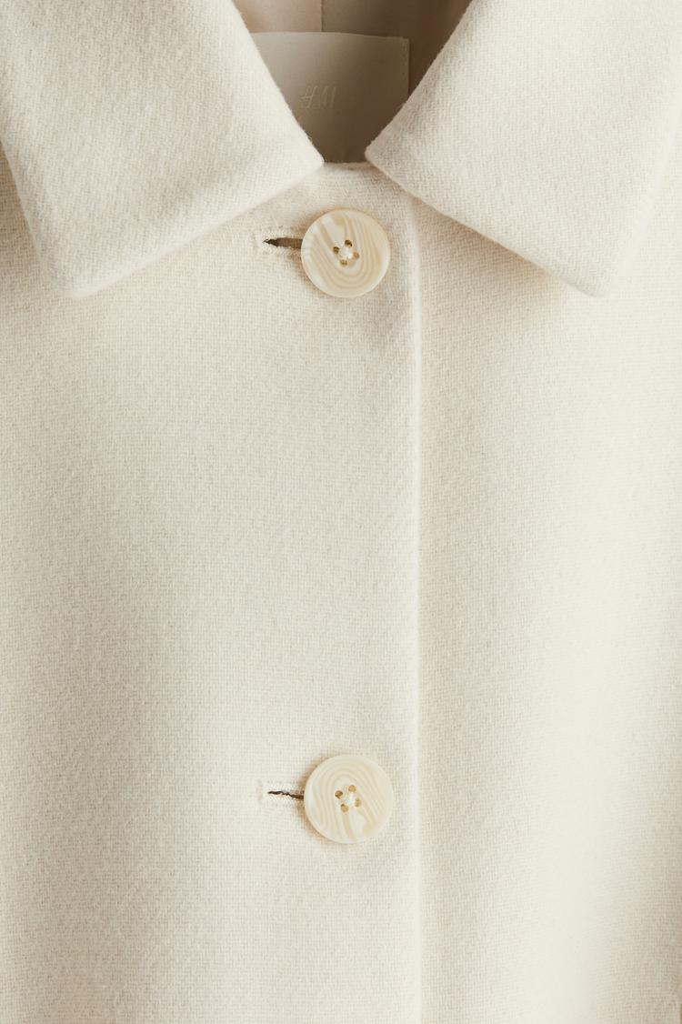 This classic single-breasted jacket features a clean, off-white wool fabric with a minimalist design. It has a structured turn-down collar and long regular sleeves, fastened with matching buttons down the front. The regular fit offers versatile comfort, making it perfect for casual outings, workwear, or business casual settings during autumn, winter, or spring seasons.
