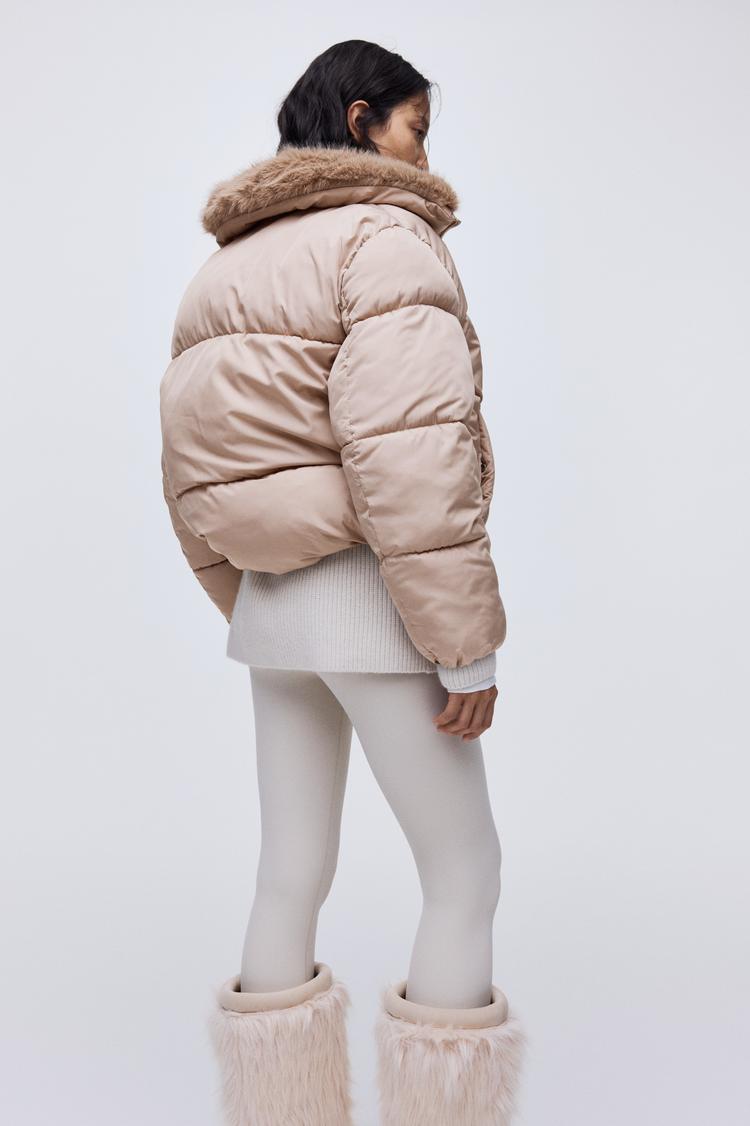 This oversized puffer jacket in a matte light beige hue offers quilted warmth with a plush stand collar featuring faux fur trim. The hip-length silhouette and relaxed fit create a cozy, street-style look ideal for chilly autumn and winter days. Long regular sleeves and a front zipper closure enhance comfort and ease, while practical side pockets add functionality. Made from durable polyester, this jacket balances casual chic with trendy appeal, perfect for everyday wear, travel, and casual outings in cooler weather.