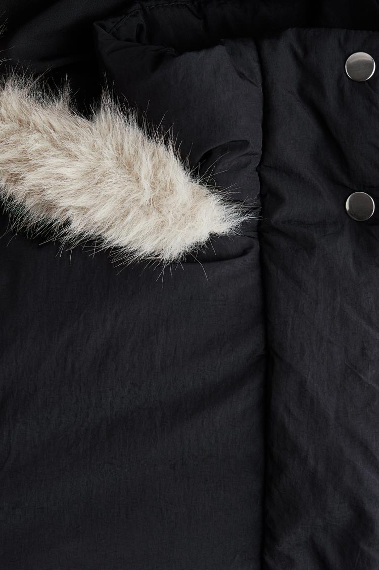 hooded jacket with faux fur trim