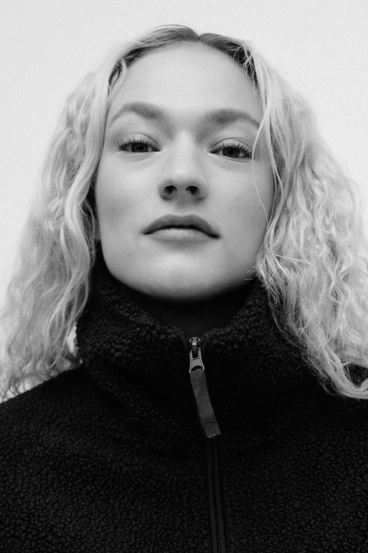 This relaxed-fit blouson jacket crafted from plush teddy fleece offers cozy warmth and a soft texture perfect for autumn and winter. Featuring a stand collar and long regular sleeves, it closes with an exposed front zipper and includes front pockets for added functionality. The jacket's waist-length silhouette in matte dark brown brings casual chic and street style vibes, making it ideal for casual outings, travel, and loungewear. Its textured fleece fabric and subtle zipper details add visual interest without overwhelming the solid color base.
