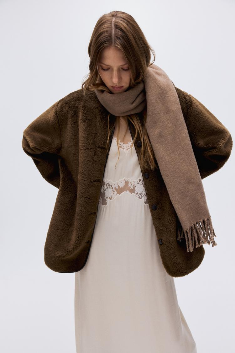 brown plush fleece coat