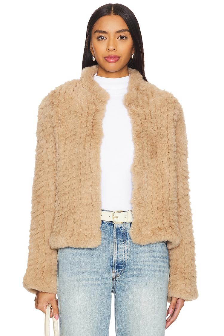 beige faux fur jacket