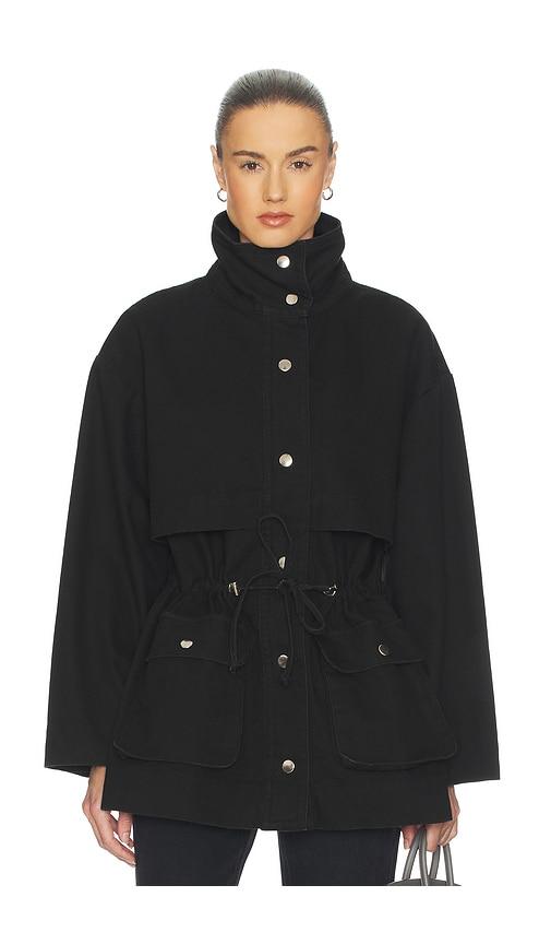 HELSA GARMENT WASHED UTILITY JACKET IN BLACK.