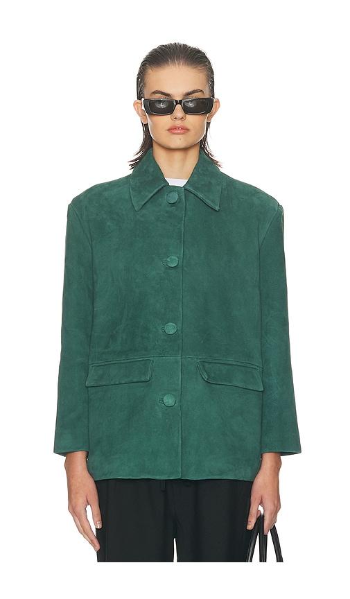 HELSA THE SCHOOLHOUSE JACKET IN SUEDE IN GREEN.