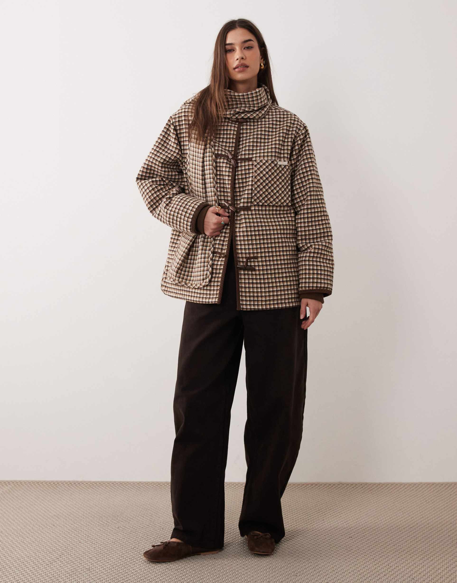 HOUSE OF SUNNY RETRO BLANKET JACKET WITH DETATCHABLE SCARF IN MULTI CHECK