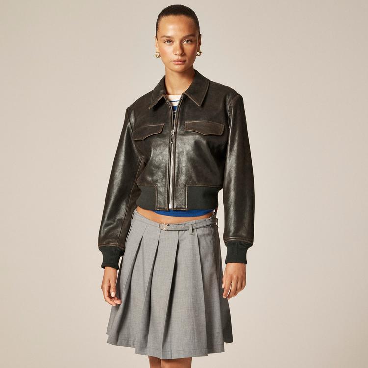 COLLECTION CROPPED FLIGHT JACKET IN DISTRESSED LEATHER