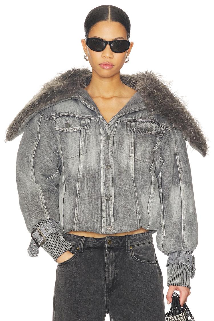 ALLOY DENIM BOMBER JACKET WITH FAUX FUR COLLAR