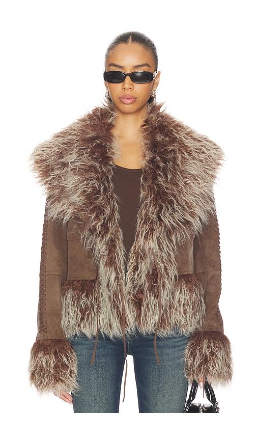 JADED LONDON MONGOLIAN FAUX FUR JACKET IN BROWN.