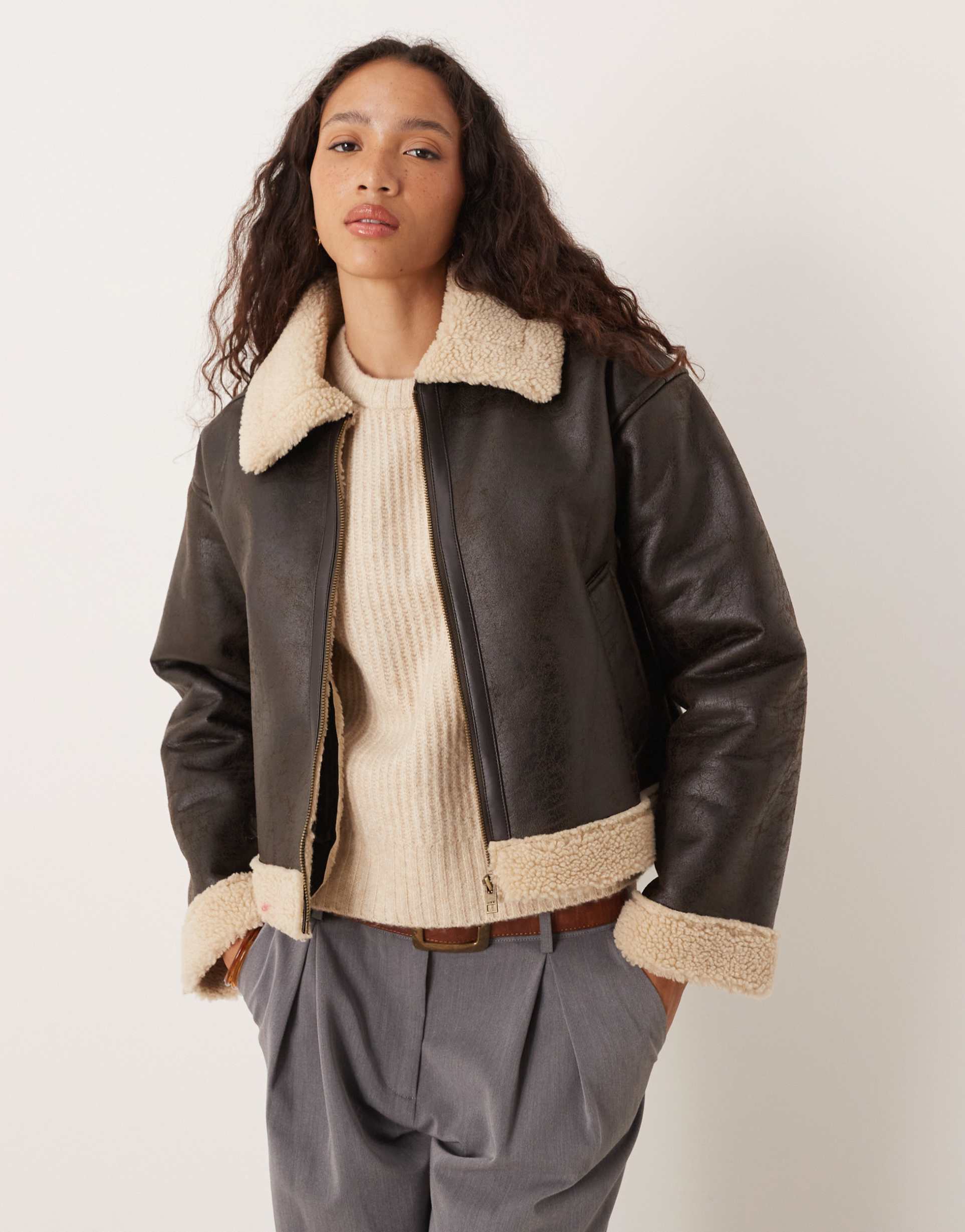 JJXX CROPPED AVIATOR JACKET IN BROWN