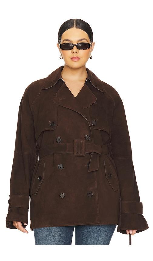 L'ACADEMIE BY MARIANNA ELAE SUEDE JACKET IN CHOCOLATE.