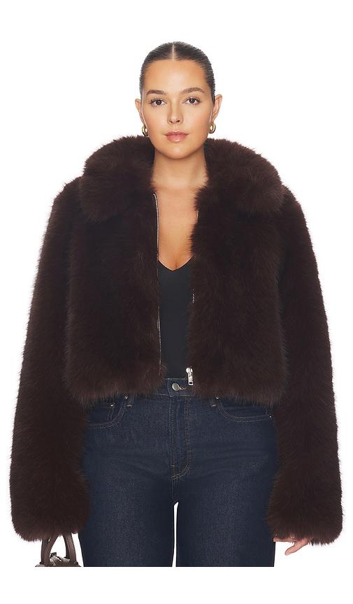 L'ACADEMIE BY MARIANNA SAVOIE FAUX FUR JACKET IN BROWN.